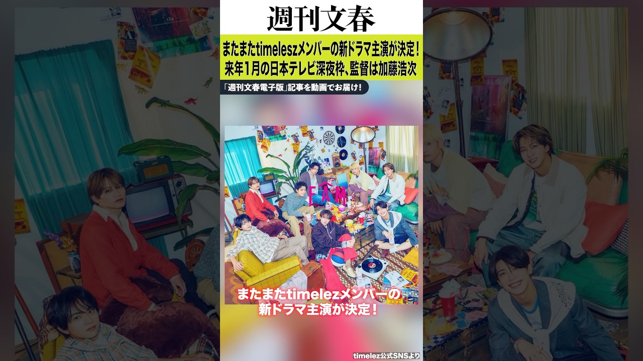 #文書 松島聡、橋本将生だけじゃない…またまたtimeleszメンバーの新ドラマ主演が決定! 来年1月の日本テレビ深夜枠、監督は加藤浩次