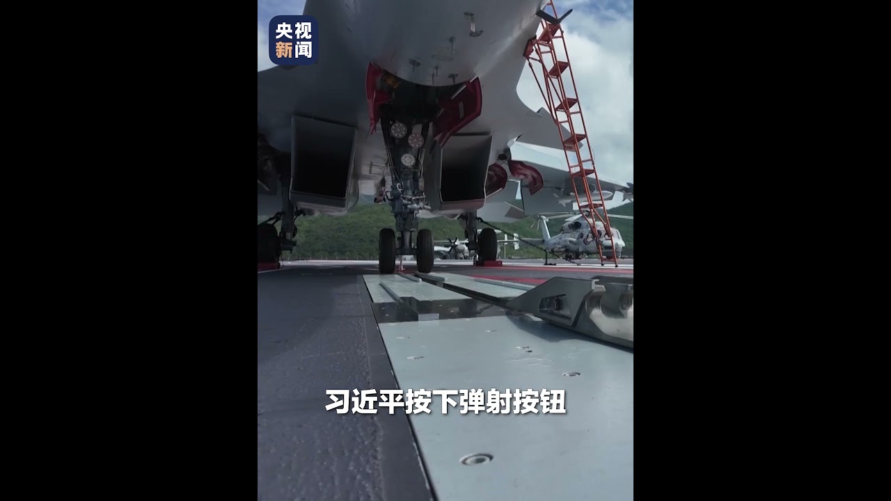 现场视频!习近平主席在福建舰按下电磁弹射按钮,甲板上空载的动子如离弦之箭弹向舰艏。 #中国新闻社
