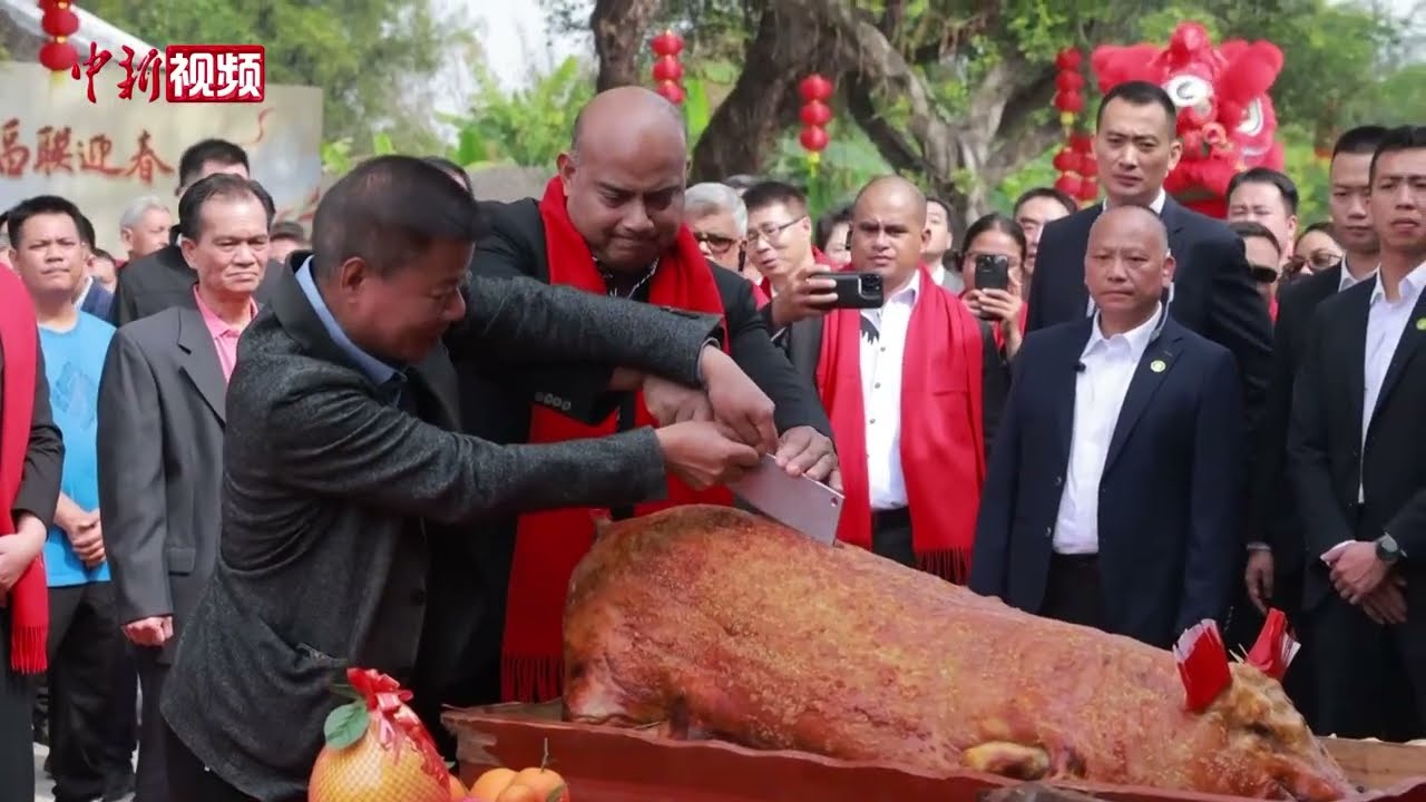 2月11日,瑙鲁总统戴维·阿迪昂率代表团来到广东江门开平市赤坎镇中股村忠心里。在去年7月到此寻根谒祖之后,阿迪昂总统选择在春节前夕回到村里,和祖籍地的亲人一起度过中国南方小年。中股村忠心里的村民们为戴维·阿迪昂准备了热烈的欢迎仪式,也精心准备了充满年味的民俗活动,让跨越几千公里回家的瑙鲁亲人,体验富有仪式感的传统习俗。在村民的介绍和示范下,戴维·阿迪昂用毛笔写“福”字,给老屋贴春联,还动手学做当地的传统小吃。他学得认真、做得投入,全程兴致盎然。(何俊杰 王庆然 郭军)