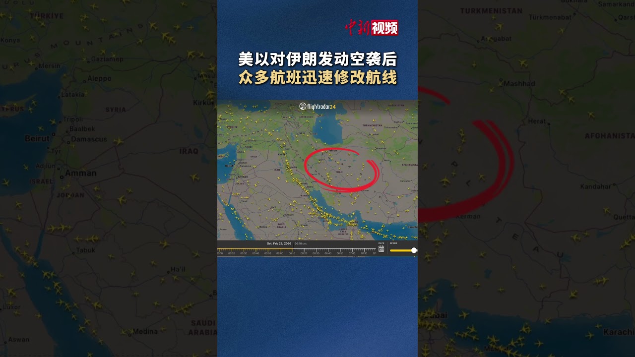 美以对伊朗发动空袭后 众多航班迅速修改航线#以色列#伊朗#美国 #中国新闻社