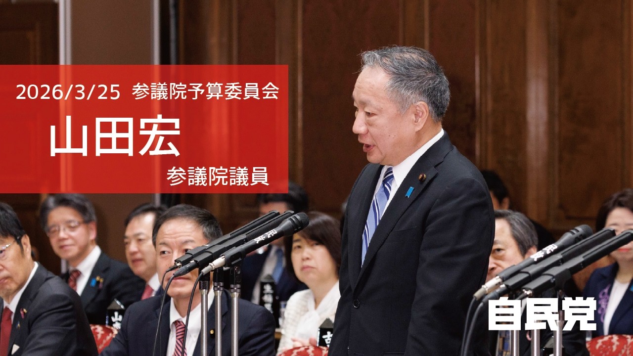 令和8年3月25日(水)、参議院予算委員会が行われ、山田宏参議院議員が質問を行いました。