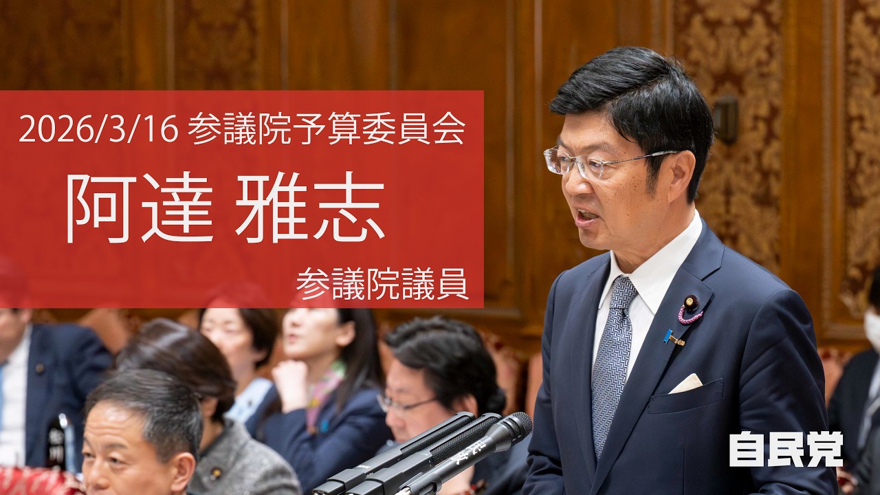 令和8年3月16日(月)、参議院予算委員会が行われ、阿達 雅志 参議院議員が質問を行いました。