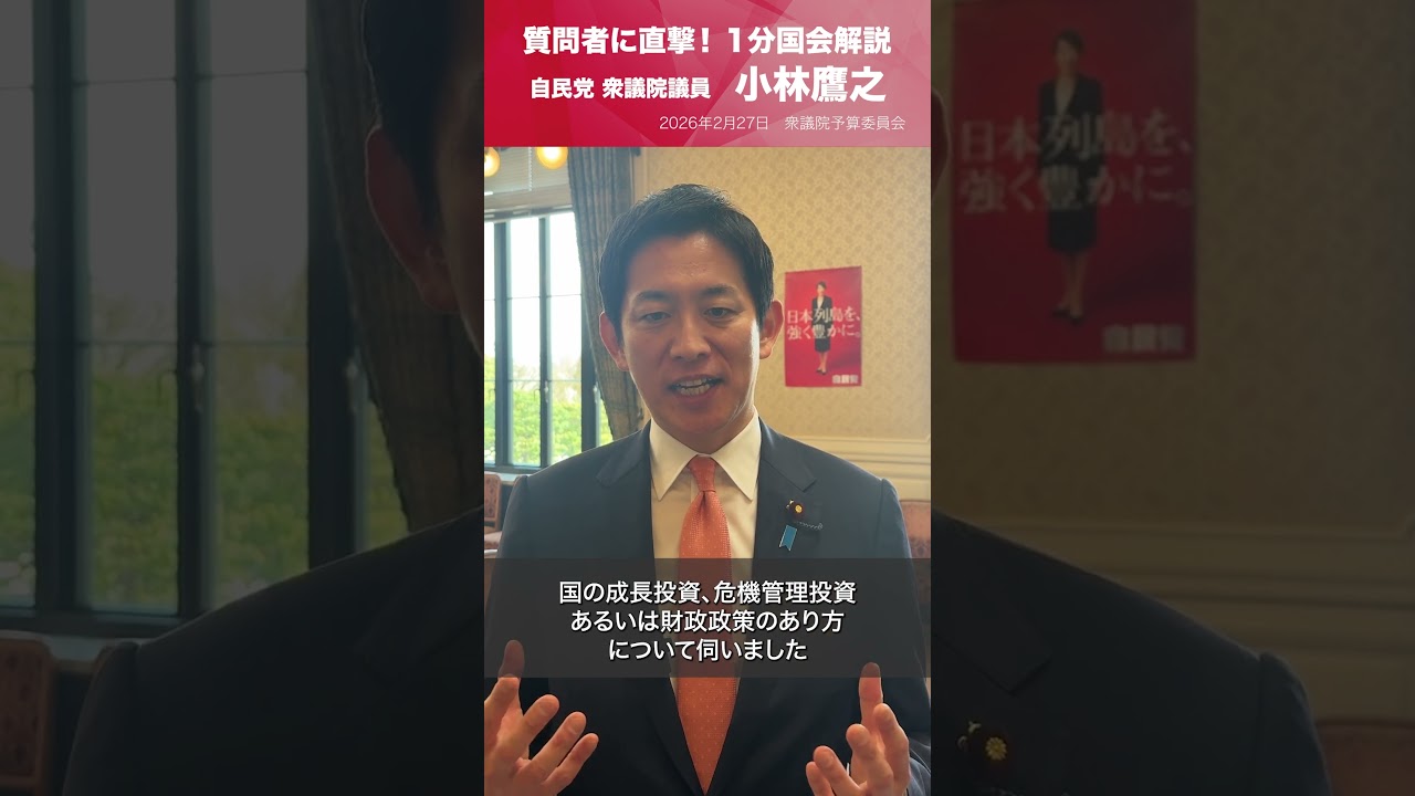 #自民党 【1分国会解説】衆議院予算委員会の質疑に立った #小林鷹之 衆議院議員を直撃