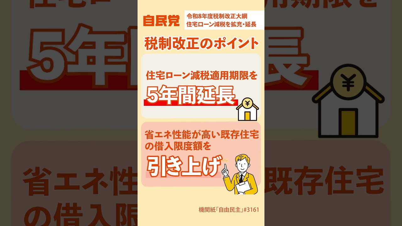 #自民党 令和8年度税制改正大綱 住宅ローン減税を拡充・延長【LDP TOPICS】1分解説
