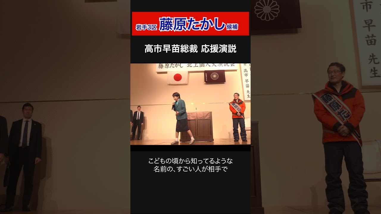 復興大臣政務官として、本当に復興を第一に考えてどんなふうにしてまた地域を元気にしていくか、頭を使って使って彼は頑張ってきました。 #高市早苗 総裁応援演説(岩手3区 藤原たかし)2026.2.6