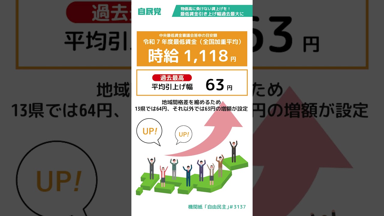 #自民党 物価高に負けない賃上げを!最低賃金引き上げ幅過去最大に【LDP TOPICS】1分解説