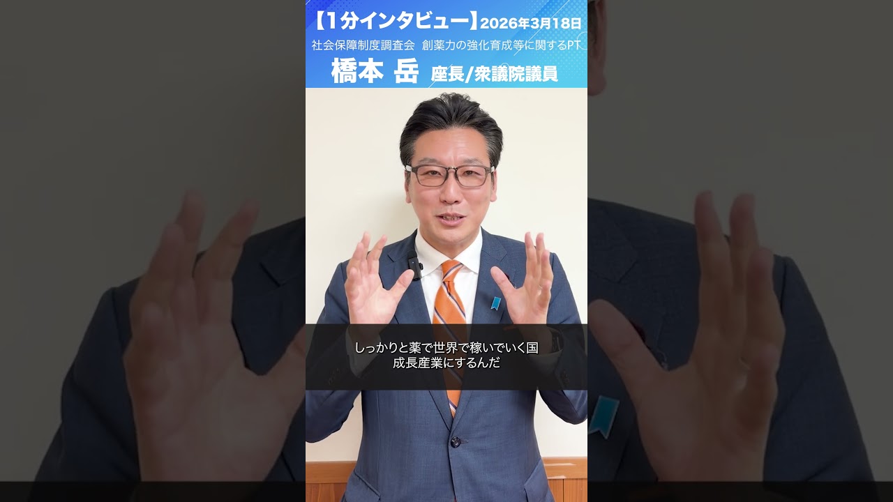 社会保障制度調査会 創薬力の強化育成等に関するプロジェクトチーム #橋本岳 座長/衆議院議員