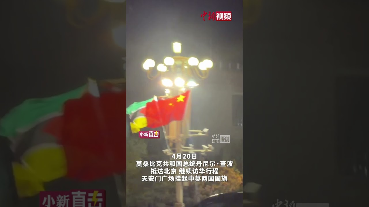 莫桑比克总统查波抵达北京 天安门广场挂起中莫两国国旗 #中国新闻社