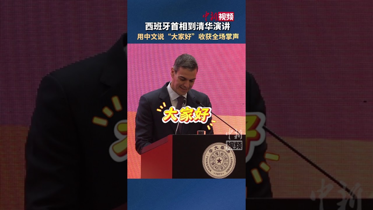 #西班牙首相用中文说“大家好” 收获全场掌声 #西班牙首相到清华大学演讲 #西班牙 #中国新闻社