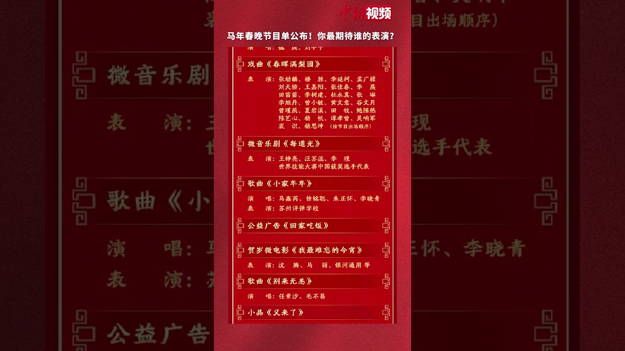 马年春晚节目单公布!你最期待谁的表演?#蔡明时隔7年回归春晚 #王菲六登春晚 #中国新闻社
