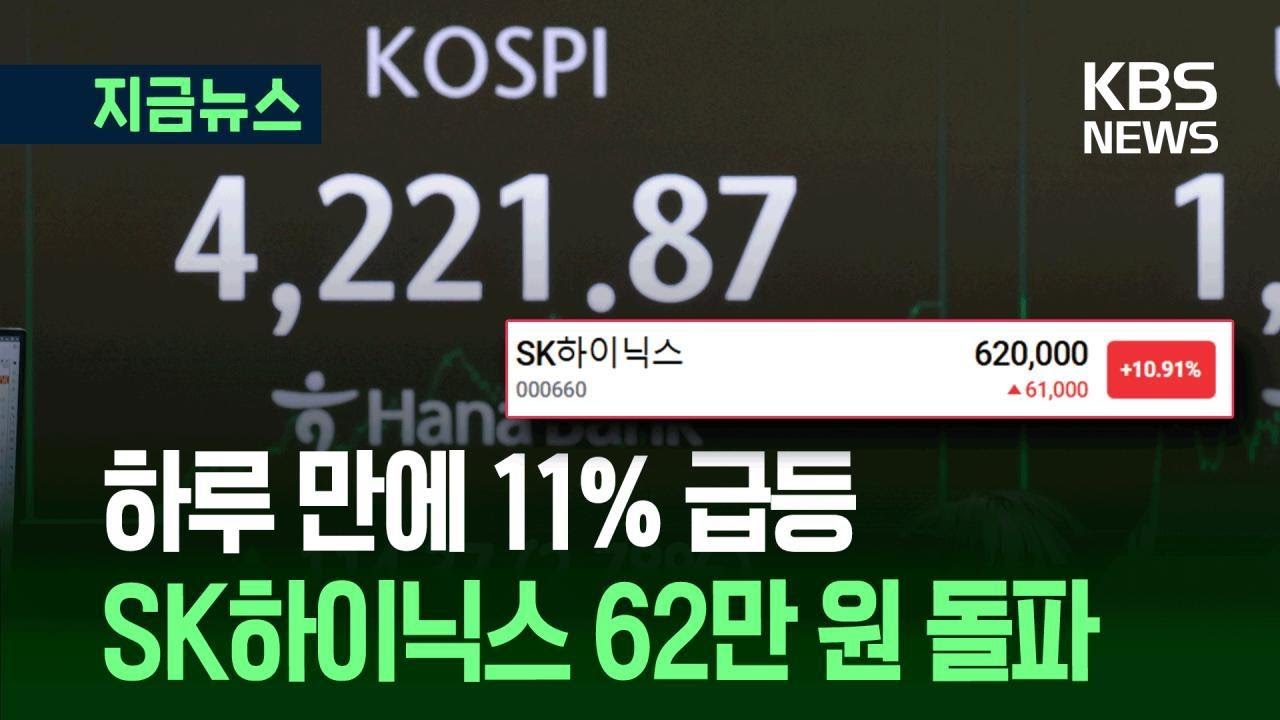 SK하이닉스가 11% 가까이 올라 62만 원을 기록했습니다.