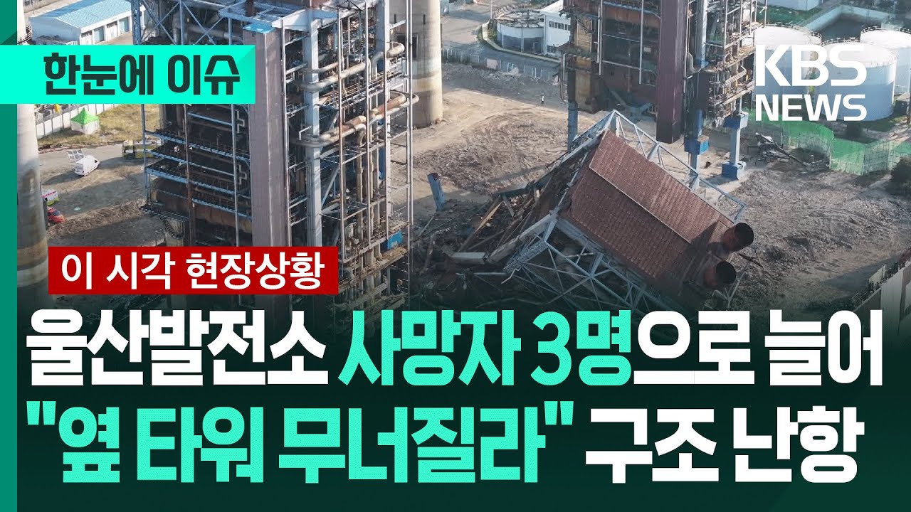 [한눈에 이슈] 울산발전소 붕괴 “사망 3명·사망 추정 2명”…’옆 타워도 무너질라’ 추가 붕괴 우려에 구조 난항 / KBS 2025.11.07.