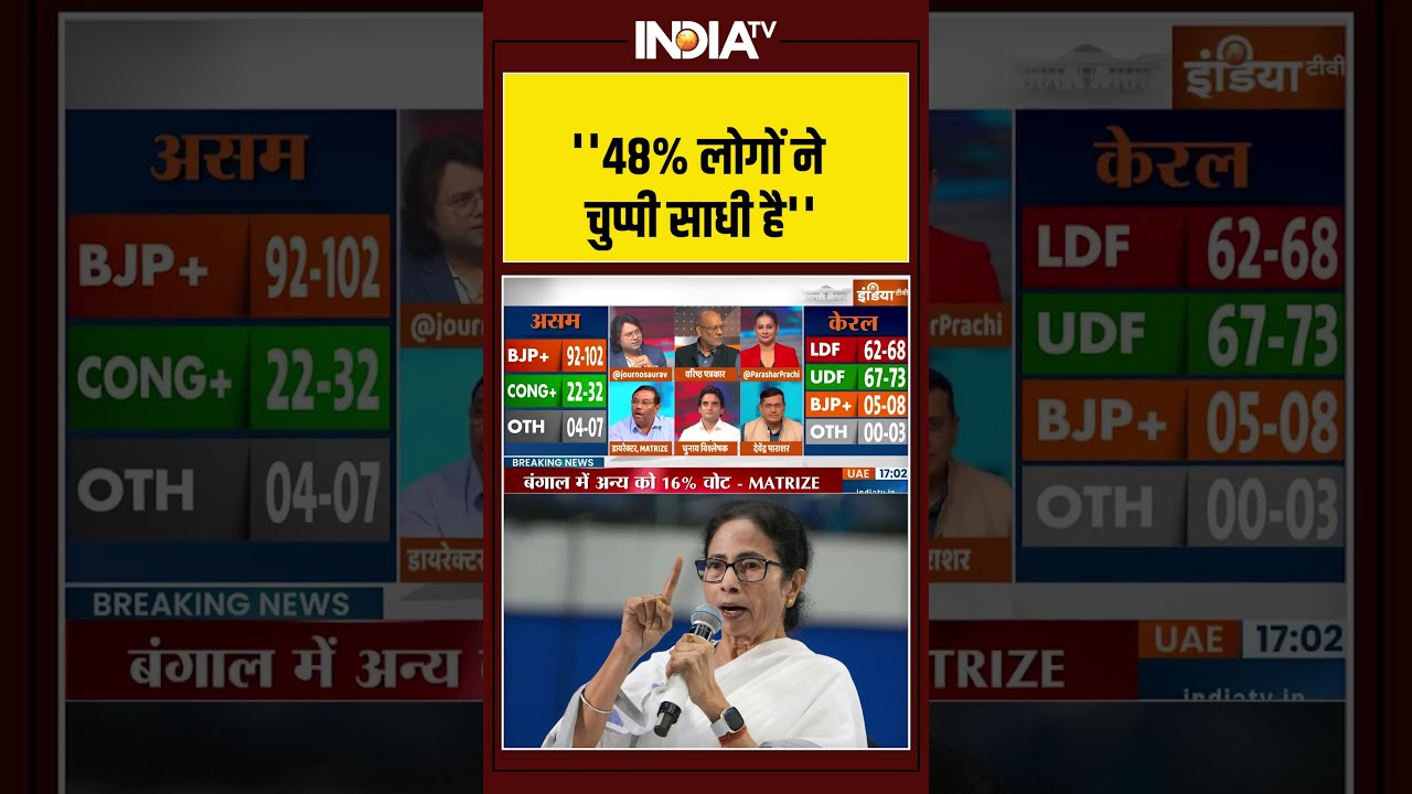 ”48% लोगों ने चुप्पी साधी है” #mamatabanerjee #tmc #bjp #opinionpoll #ytshorts #youtube #shorts #IndiaTV