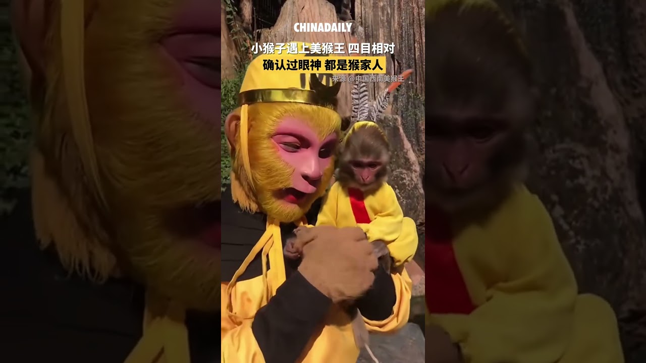 A baby monkey locked eyes with Monkey King #ChinaDaily #中国日报