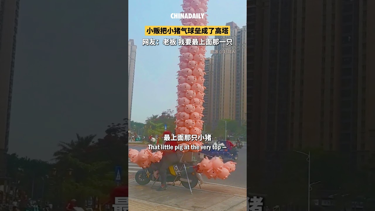 Check out this street vendor’s incredible trick — stacking piggy balloons into a towering masterpiece! Which “floor” would you buy from? How about the top one?🎈 #StreetVendor #FunChina
