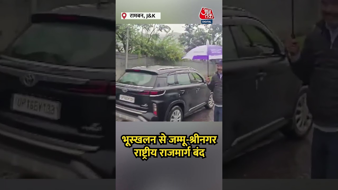 #AajTak भारी बारिश के बीच पत्थर और मलबे ने Jammu-Srinagar National Highway को अवरुद्ध किया #shortsvideo