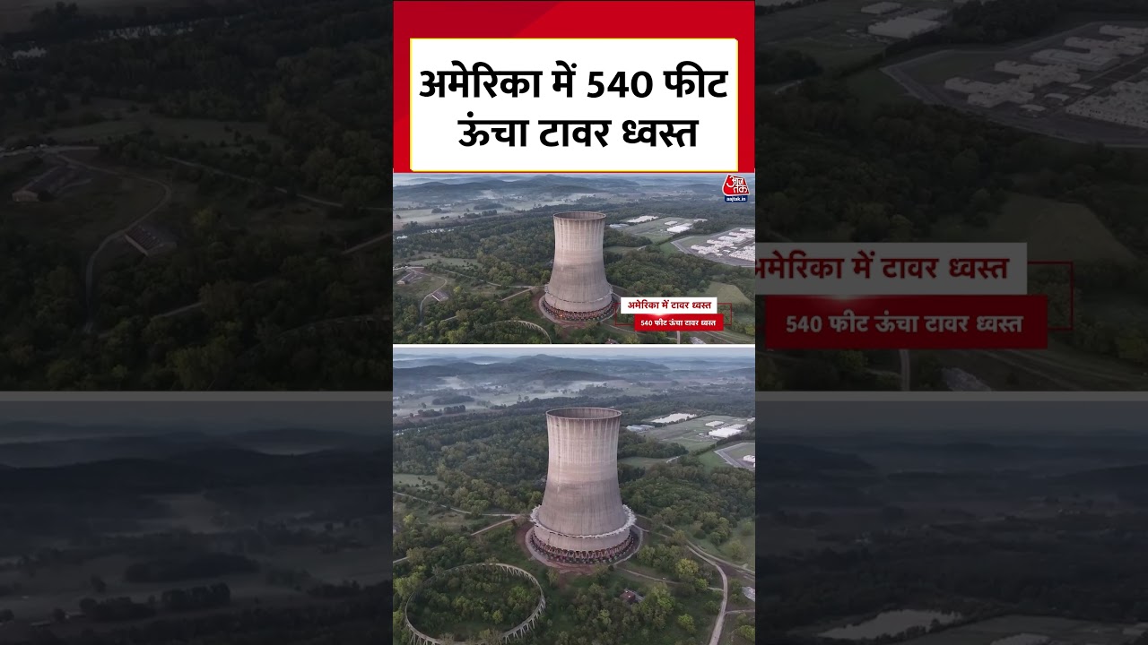 #AajTak America में 540 फीट ऊंचा न्यूक्लियर कूलिंग टावर विस्फोटक से उड़ाया गया, देखें तस्वीरें #shortsviral