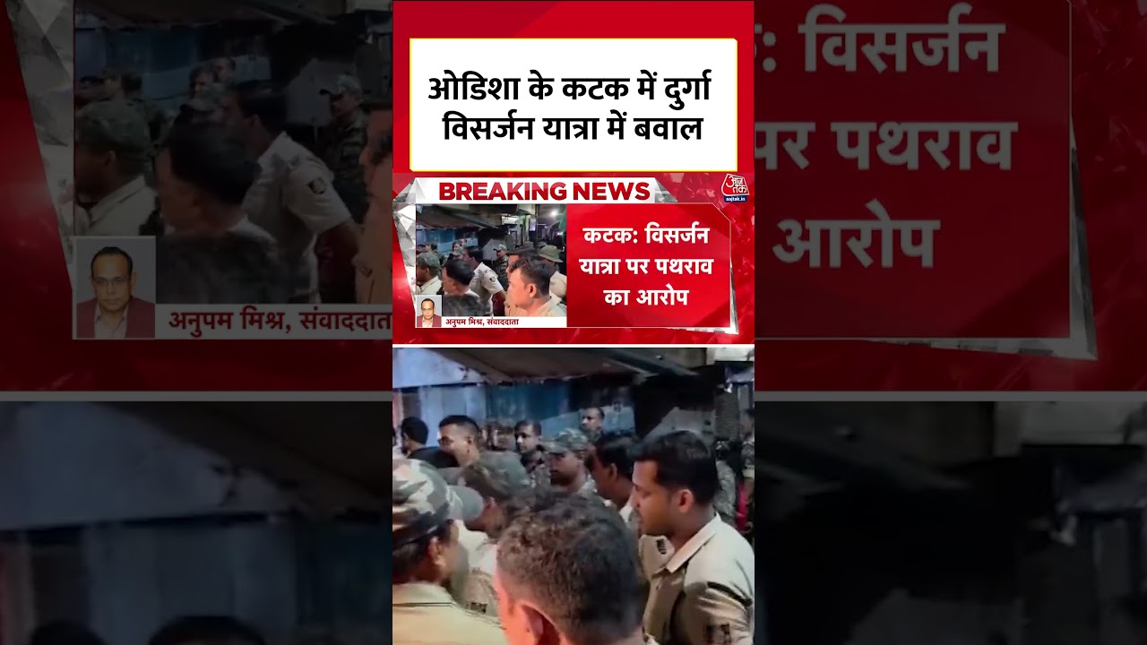 #AajTak Cuttack में Durga Visarjan Yatra में बवाल, पथराव के बाद तनाव, Police तैनात #shortsvideo #aajtak