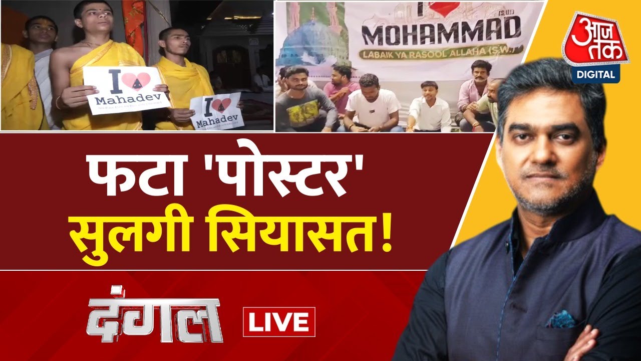 आज का दंगल देश में फैल रहे एक मजहबी पोस्टर संक्रमण को लेकर है. 4 सितंबर को कानपुर में एक विवाद हुआ. उसके 2 हफ्ते बाद अचानक ऐसी अफवाह उड़ा दी गई कि आई लव मुहम्मद कहने पर मुकदमा कायम हुआ है. विरोध में अब शहर शहर ऐसे पोस्टर लेकर लोग मार्च करते नजर आ रहे हैं. बिना इजाजत मार्च निकालने पर पुलिस रोकटोक कर रही है तो पुलिस पर हमले हो रहे हैं…इसी मसले से जुड़े विवाद में गांधीनगर और कर्नाटक के दावनगेरे में हिंसा हो गई है. अब दूसरी तरफ से हिंदू समुदाय भी पोस्टरबाजी पर उतर आया है. मुस्लिम समुदाय आई लव मुहम्मद का पोस्टर लेकर चल रहे हैं तो हिंदू समुदाय आई लव महादेव और आई लव महाकाल के पोस्टर लगा रहे हैं. ये मामला पहले यूपी से शुरू हुआ, इसे अफवाह का रंग दिया गया और अब तक 5 राज्यों में ऐसे विवाद सामने आ चुके हैं. इस पर राजनीतिक बयानबाजी भी हो रही है. धार्मिक स्वतंत्रता के हनन का दुष्प्रचार जोर पकड़ने लगा है और चिंताजनक बात ये है कि इसे ऐड्रेस करने के लिए राजनैतिक तौर पर कोई पहल नहीं हुई है. अफवाह एक जगह से दूसरी जगह फैल रही है.