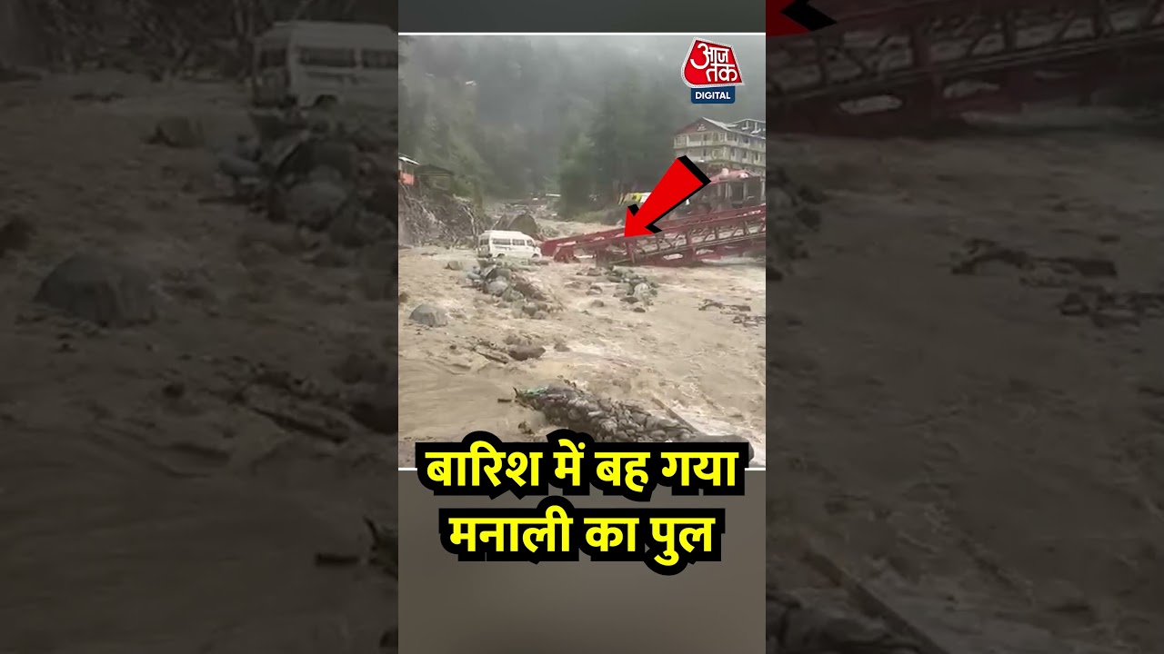 #AajTak Heavy Rain in Himachal Pradesh : बारिश में बह गया मनाली का पुल | Manali | Monsoon | Flood | #Shorts