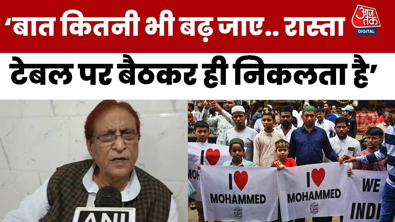 समाजवादी पार्टी नेता आजम खान ने आई लव मोहम्मद विवाद को लेकर बीजेपी और यूपी सरकार पर निशाना साधते हुए कहा कि बात कितनी भी बढ़ जाए रास्ता टेबल पर बैठ कर ही निलकता है.