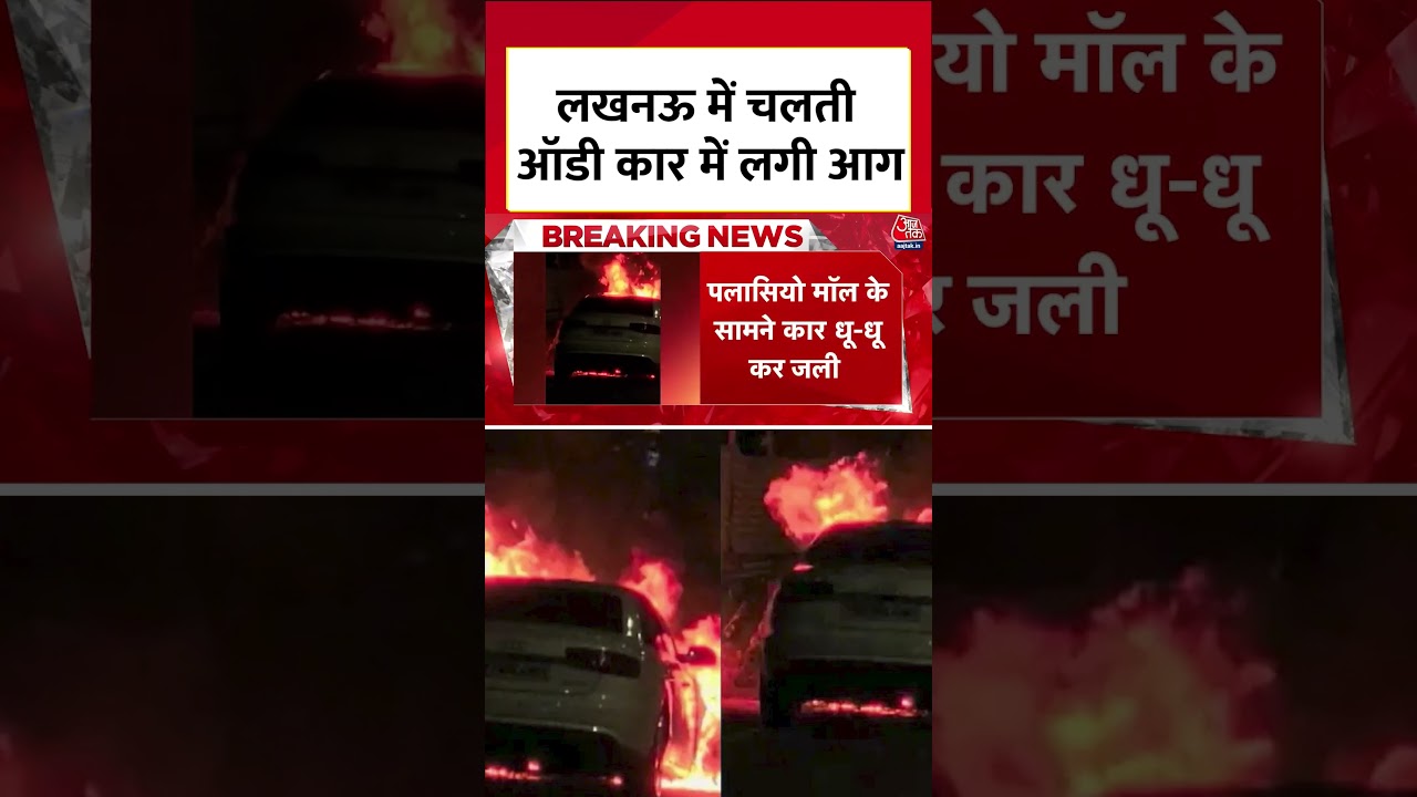 #AajTak Lucknow के शहीद पथ पर चलती Audi कार में लगी आग, बाल-बाल बचे सवार #shorts #shortsviral