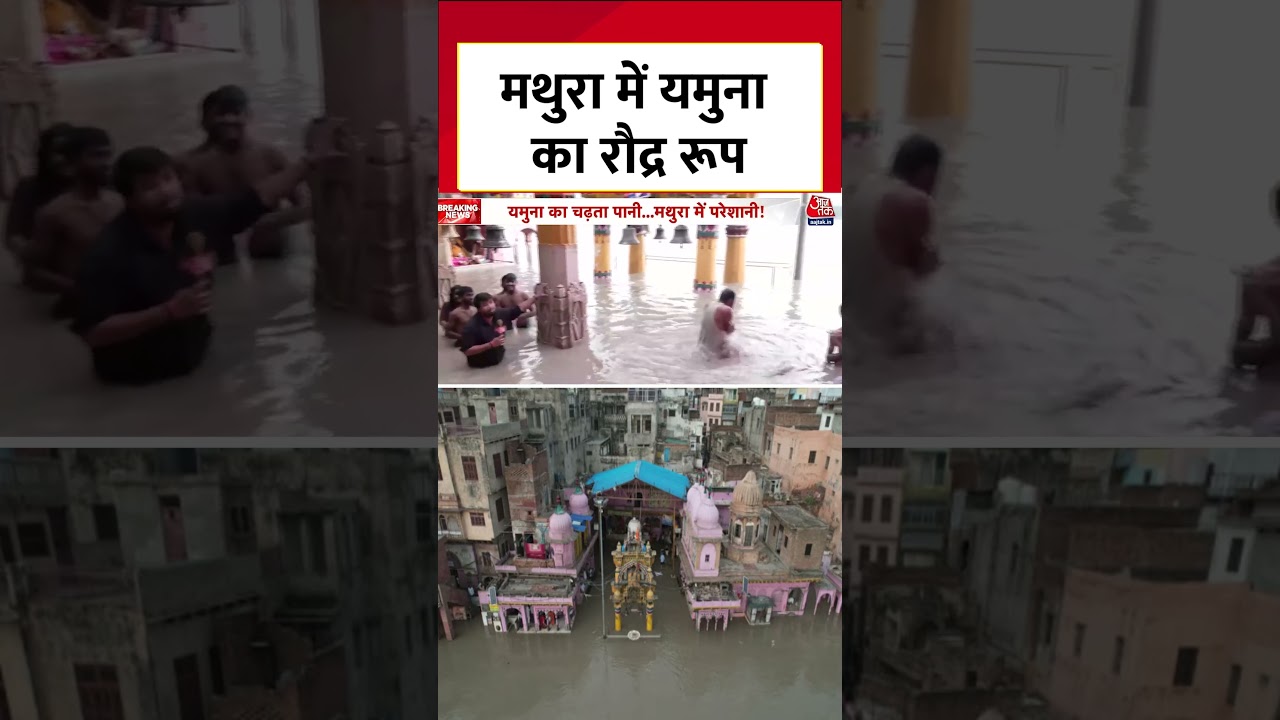 #AajTak Mathura Floods News: मथुरा में यमुना का रौद्र रूप, खतरे के निशान से ऊपर जलस्तर #shortsviral #shorts