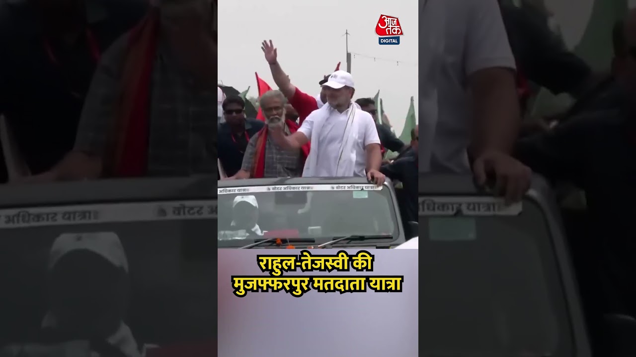#AajTak Rahul Gandhi और Tejashwi Yadav की मुजफ्फरपुर में Voter Adhikar Yatra #shorts#biharelection2025