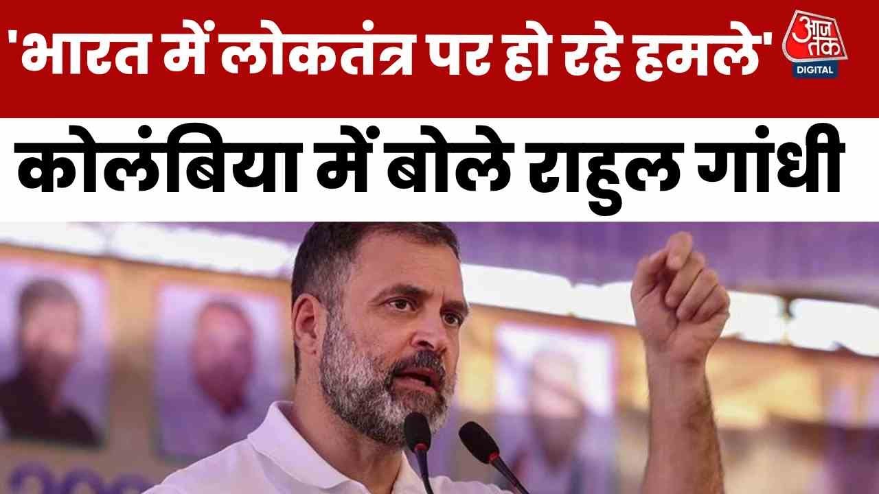 #AajTak Rahul Gandhi Colombia Speech: कोलंबिया में राहुल गांधी बोले- भारत में लोकतंत्र पर हो रहे हैं हमले