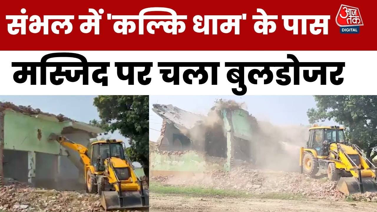 #AajTak Sambhal Bulldozer Action: Kalki Dham के पास सरकारी जमीन पर बनी Mosque पर चला बुलडोजर