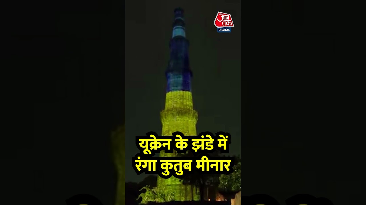 #AajTak Ukraine के झंडे में रंगा कुतुब मीनार #shorts #shortsvideo #viralvideo