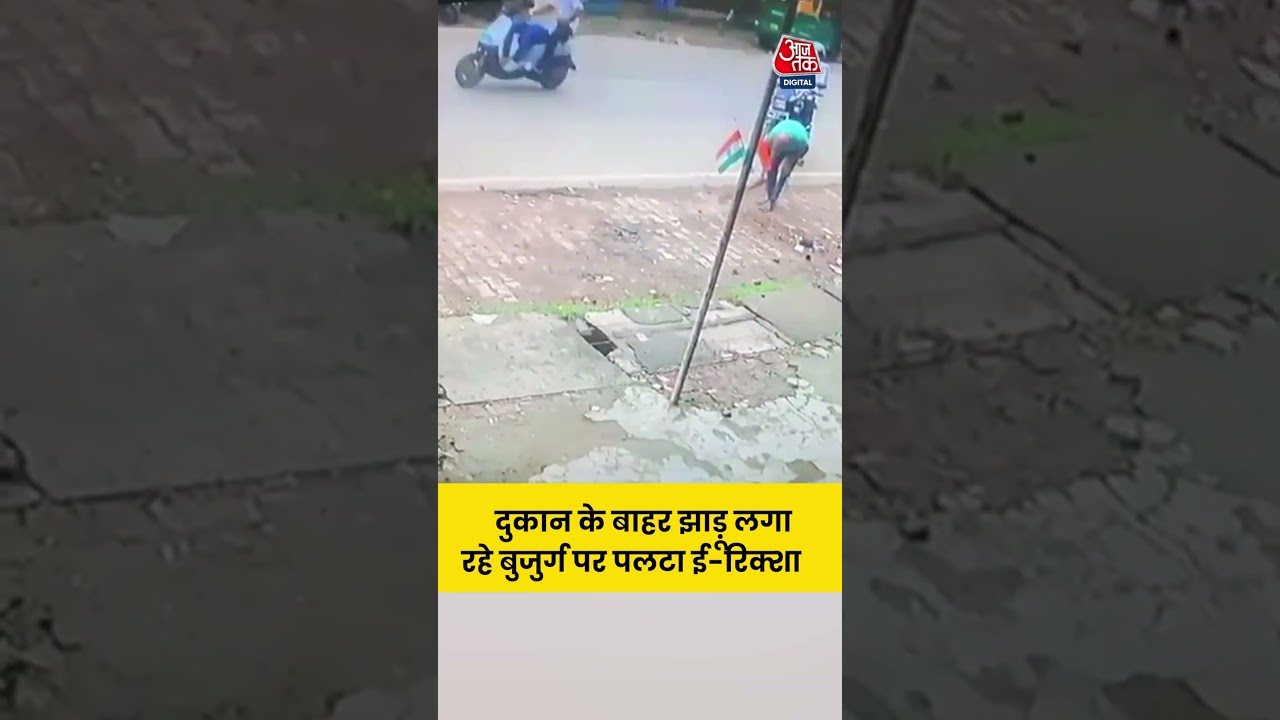 #AajTak Viral Video: दुकान के बाहर झाड़ू लगा रहे बुजुर्ग पर पलटा ई रिक्शा #shortsvideo #viralvideo