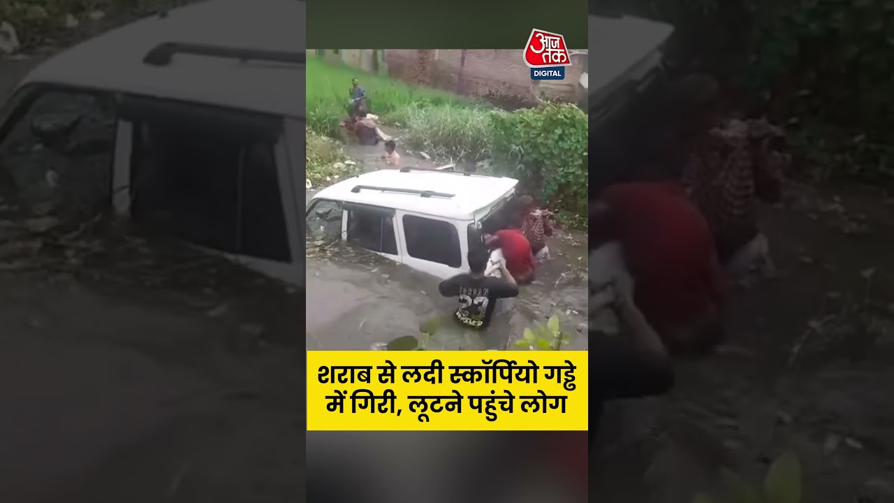 #AajTak Viral Video: Siwan में शराब से लदी स्कॉर्पियो गड्ढे में गिरी, लूटने पहुंचे लोग #shortsvideo