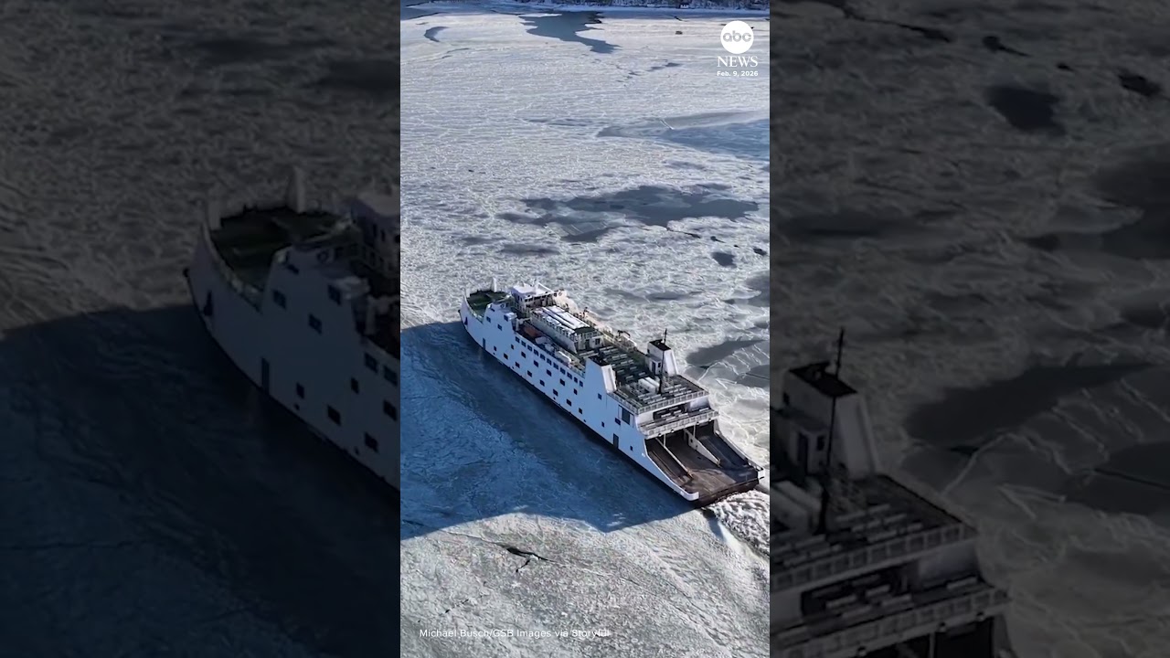 #ABCNews Aerial footage captures ferry cruising through icy waters