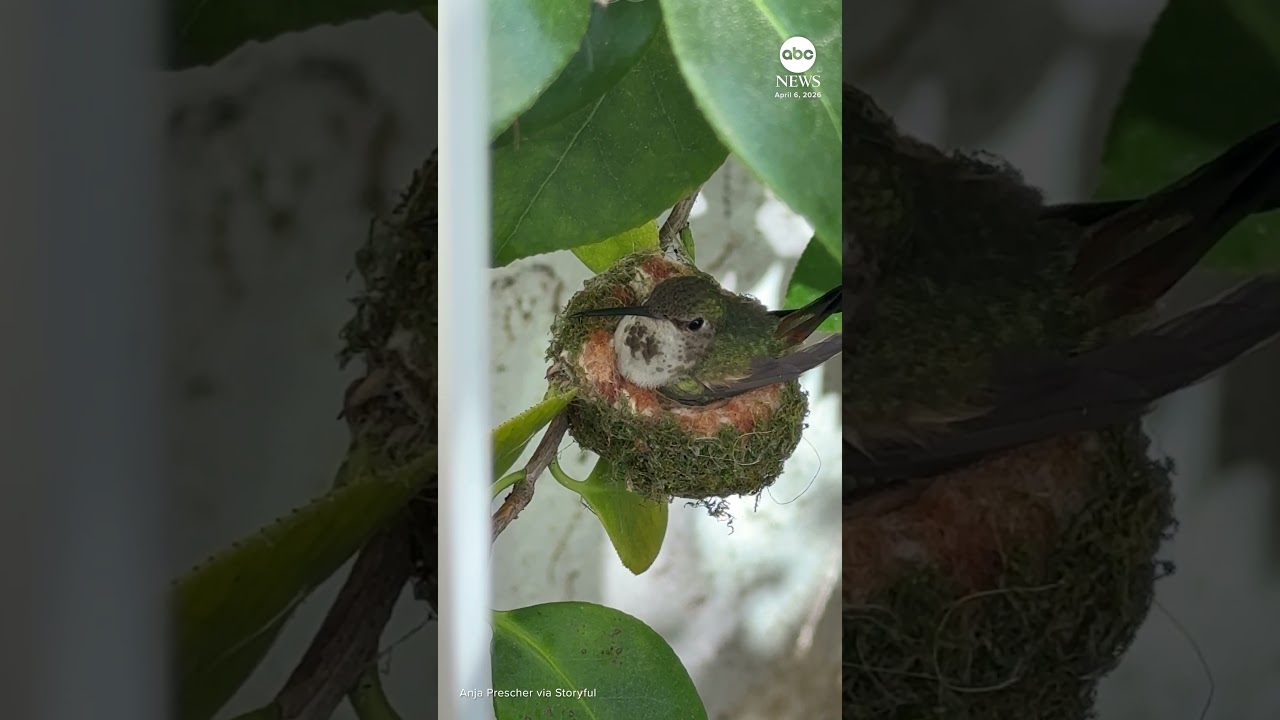 #ABCNews Hummingbird feeds newly hatched chick