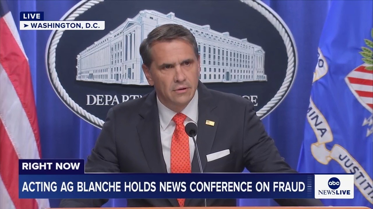 Acting Attorney General Todd Blanche holds a news conference on fraud.