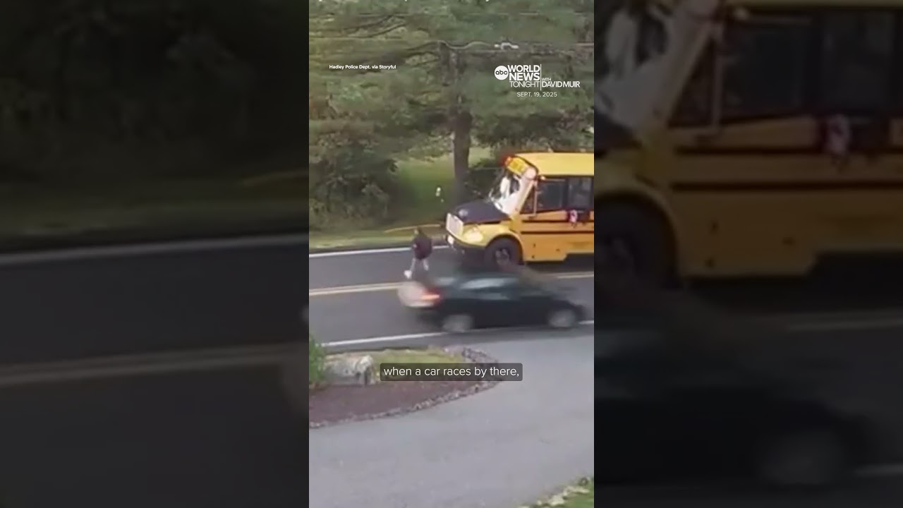 #ABCNews Massachusetts student almost hit by car while crossing street for school bus