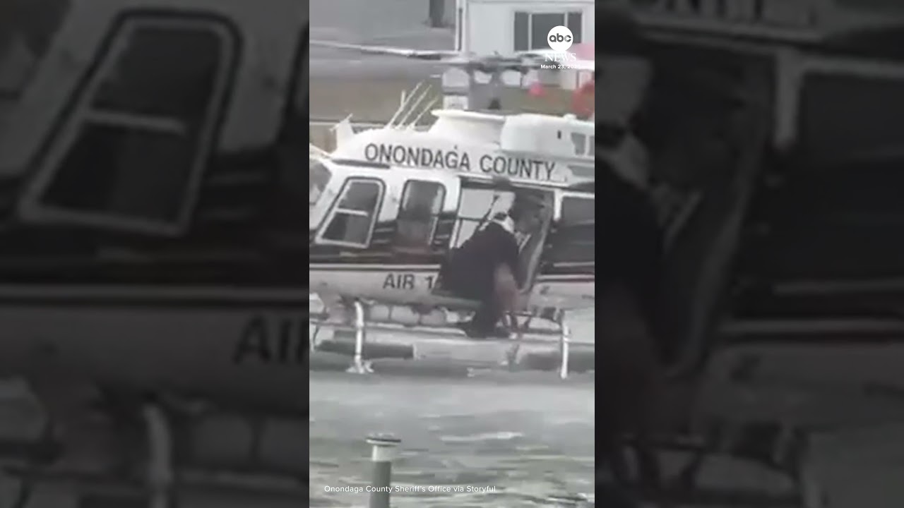 Police in New York state pulled a dog from the middle of the Seneca River in a daring helicopter rescue.