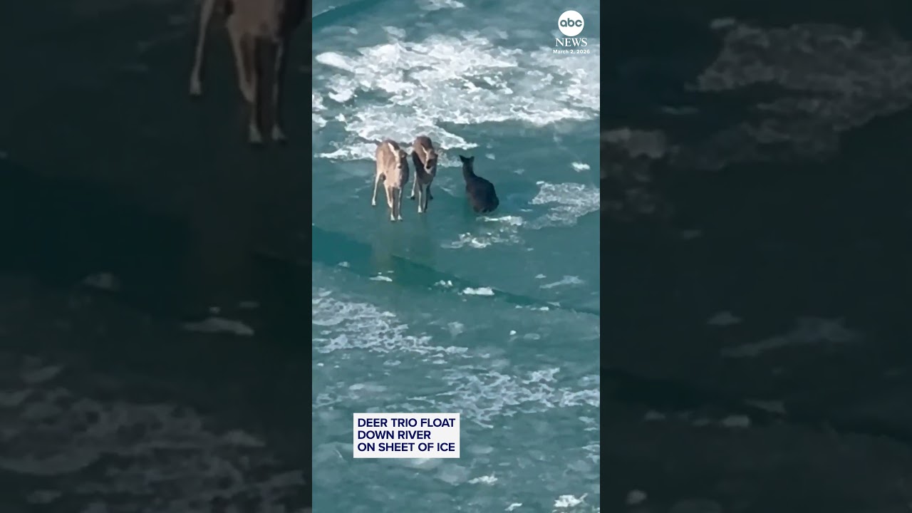 #ABCNews Trio of deer float down river on sheet of ice