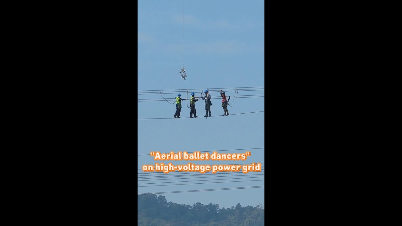 “Aerial ballet dancers” on high-voltage power grid #NEWCHINATV
