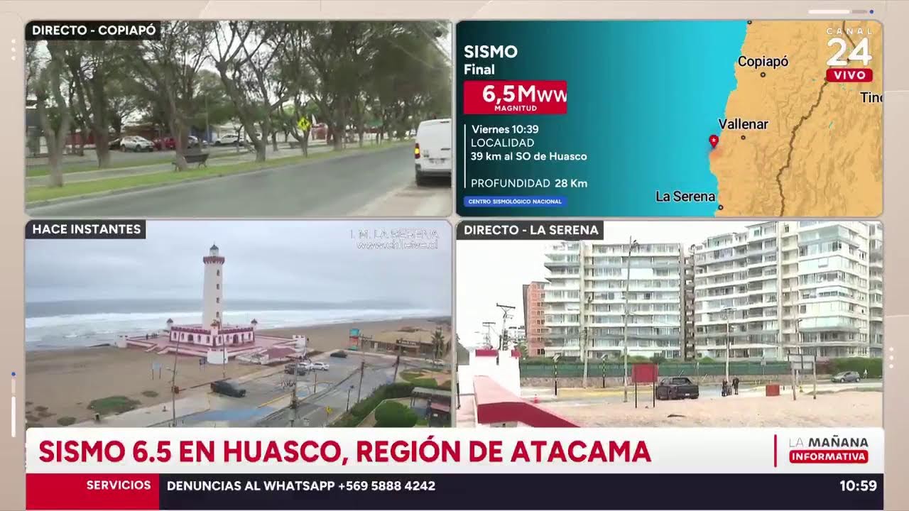 AHORA | FUERTE SISMO 6.5 EN EL NORTE DEL PAÍS – 43 km al SO de Huasco – Región de Atacama #24HorasTVNChile