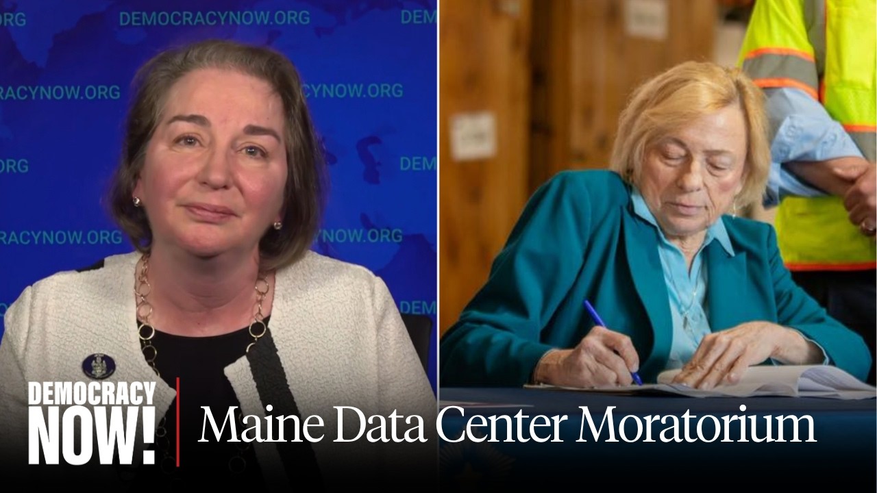 Communities across the United States are pushing back against resource-draining data centers being built to fuel artificial intelligence and crypto ventures. In Maine, state legislators recently passed a first-in-the-country statewide moratorium on large data centers. “Maine residents are concerned about the impacts of data centers on both their electric rates and other utility rates, as well as on our wonderful environment,” says Democratic state Representative Melanie Sachs, who sponsored the bill designed to give legislators time to develop regulations around new data center construction. Sachs says developers have been operating in “complete secrecy,” refusing to engage with community stakeholders, while their plans appear to provide “limited economic opportunity with very few local jobs.” The bill goes to Maine Governor Janet Mills’s desk next.