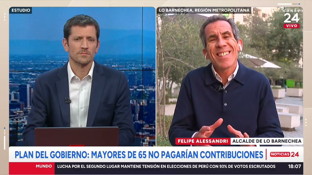 El alcalde de Lo Barnechea Felipe Alessandri se refirió en Canal 24 Horas a la medida de eximir del pago de contribuciones a la primera vivienda a los adultos mayores, presente en el proyecto de Reconstrucción del Gobierno.