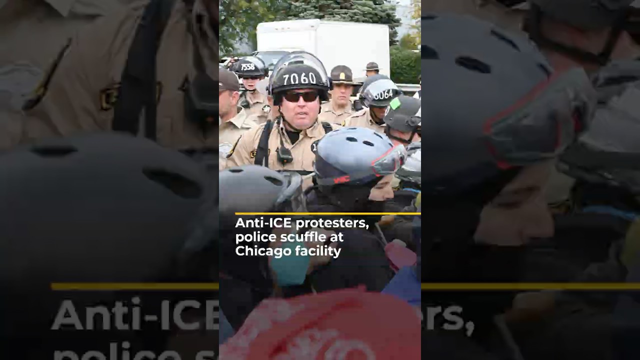#AlJazeera Anti-ICE protesters, police scuffle at Chicago facility | AJ #shorts