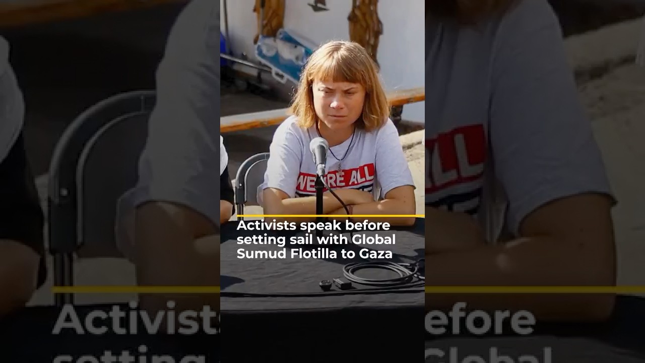 Activists addressed the media as the Global Sumud Flotilla prepared to depart for Gaza from Barcelona, aiming to deliver urgent food and supplies to the enclave. Greta Thunberg said dozens of boats have joined the effort to break Israel’s blockade and ‘deliberate denial of basic survival needs’.