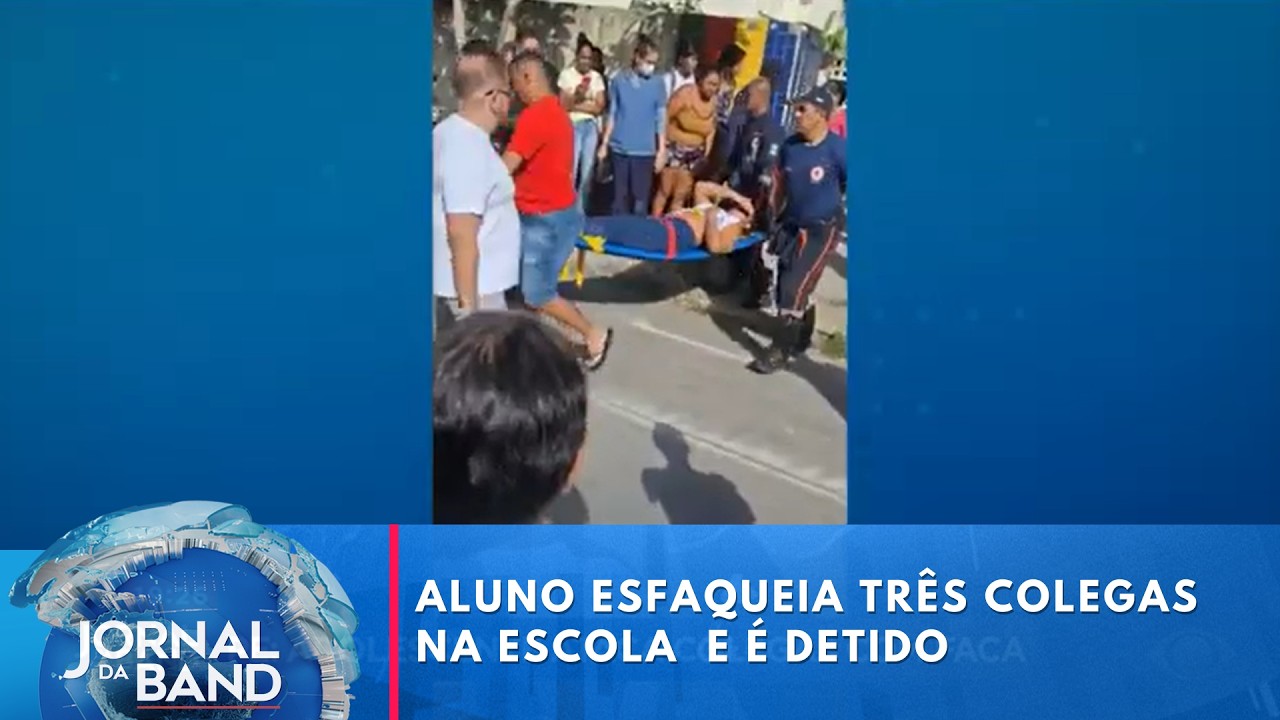 Um aluno de 14 anos foi detido depois de esfaquear três meninas em uma escola de Pernambuco. Duas tiveram alta e uma segue internada. #BandJornalismo #JornaldaBand