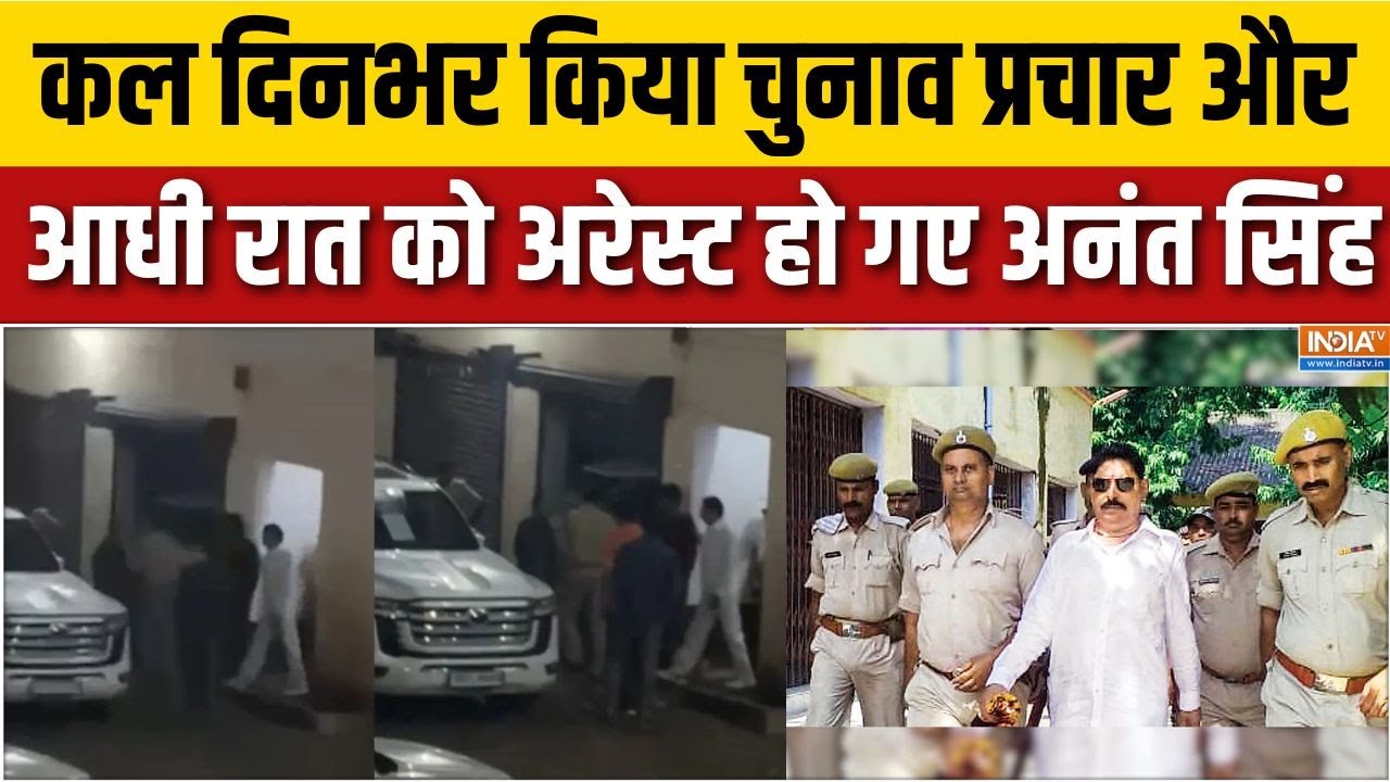जिस वक्त आप सो रहे थे उस समय बिहार में बड़ी हलचल हुई…जिसे सबसे पहले इंडिया टीवी ने दिखाया…मोकामा हत्याकांड में पुलिस ने बड़ा एक्शन लिया…और आधी रात के बाद बाहुबली अनंत सिंह को गिरफ्तार कर लिया गया…रात करीब साढ़े 12 बजे पटना पुलिस ने बाढ़ के करगिल चौक से…अनंत सिंह को गिरफ्तार किया…जिसके बाद अनंत सिह को पटना लाया गया…जहां पटना SSP ऑफिस में DM और SSP ने…ज्वॉइंट प्रेस कॉन्फ्रेंस कर इस बड़ी कार्रवाई की जानकारी दी…जिसकी लगातार कवरेज इंडिया टीवी सबसे पहले रात से ही दिखा रहा है…मोकामा में अनंत सिंह को गिरफ्तार करने के लिए पुलिस की करीब डेढ़ सौ जवानों की लंबी-चौड़ी टीम पहुंची थी…अनंत सिंह के अलावा पुलिस ने उनके दो और सहयोगियों को भी गिरफ्तार किया है…अनंत सिंह के सहयोगी रंजीत राम और मणिकांत ठाकुर को भी पुलिस ने गिरफ्तार किया है…अब तीनों को कोर्ट में पेश किया जाएगा…पटना SSP ने साफ किया कि मामले में अनंत सिंह ने सरेंडर नहीं किया है…उन्हें गिरफ्तार किया गया है…जिन्हें अब कोर्ट में पेश कर कस्टडी की मांग की जाएगी…