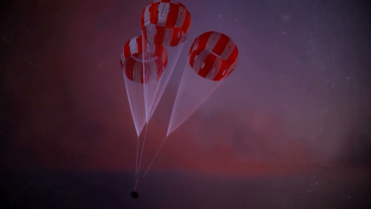 Animation released by NASA shows the process of the expected splashdown of the Artemis II crew in the Pacific Ocean.