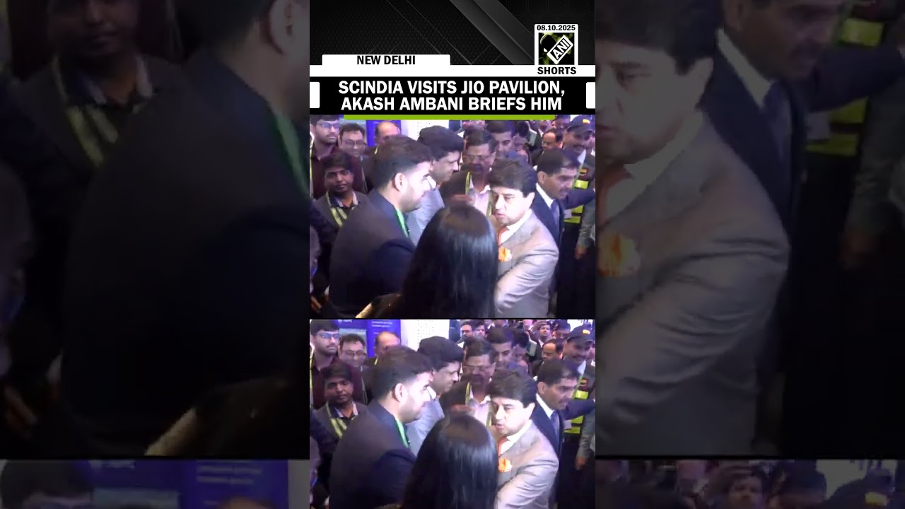 #ANINews 9th India Mobile Congress 2025: Jyotiraditya Scindia visits Jio Pavilion, Akash Ambani briefs him