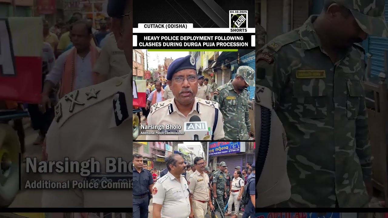 #ANINews Addl. CP Narsingh Bholo leads police deployment during Durga Puja procession after Cuttack clashes